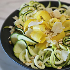 To make zucchini ribbons, use a simple vegetable peeler for thin slices. For spaghetti zucchini, a spiralizer is needed. While these ribbons can be sautéed, they are delicious served raw in summer.