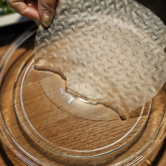 5. Place boiling water in a shallow large dish. add some cold water - water should be hot but cool enough to be able to touch.